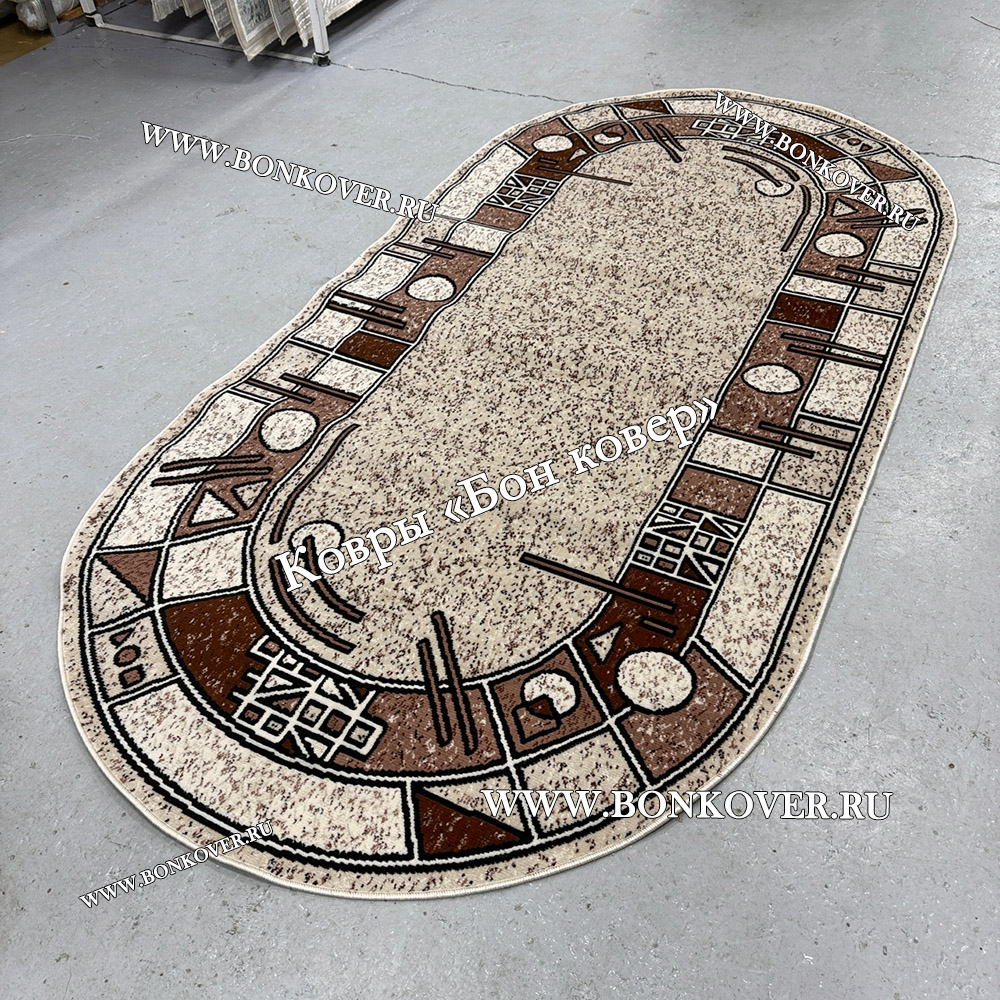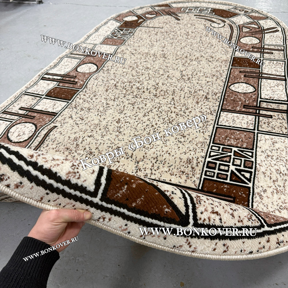 Ковер Лайт Карпет New 4 Дизайн 03 Бежево-Коричневый Овал станет великолепным преображением вашей комнаты, подчеркивая высокий статус семьи владельца.