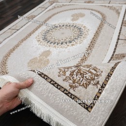Персидский Ковер Для Гостиной Дизайн 29689 New NN станет гармоничным дополнением интерьера, оформленного в современном или классическом стиле. Мягкое, но прочное, ковровое изделие обеспечивает тепло- и шумоизоляцию, отличается длительным сроком эксплуатации, надежностью, экологичностью и высокой износостойкостью, является отличным барьером от повышенной влажности в комнате и утеплителем для холодного пола. Благодаря качеству материалов, ковер не деформируется, сохраняет первоначальный вид под тяжестью предметов мебели. За его поверхностью легко ухаживать.